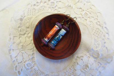 You can also do it using stamps, first you have to soak the envelope in water to release the envelope from it, after it’s dry it’s ready to be turned into a piece of jewelry like this: