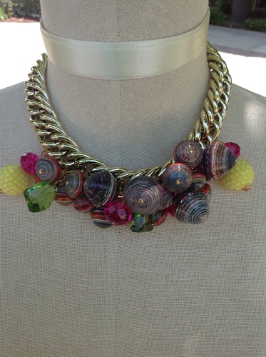 I’m back!!! Here is Creation 297 – vintage chain, chunky paper beads and yummy gems.